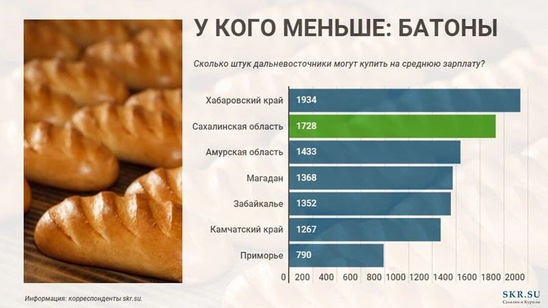 Победу в борьбе батонами одержали хабаровчане. Именно они стали самыми знатными тяжеловесами, которые смогут на всю зарплату унести 1934 штук нарезного батона. На втором месте сахалинцы, которые унесут 1728 штук. А затем идут жители Амурской области, которые смогут закупить 1433 батонов.