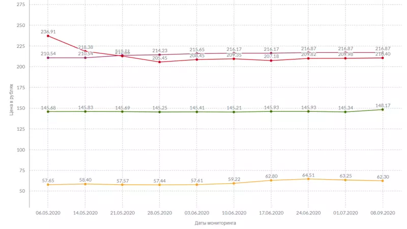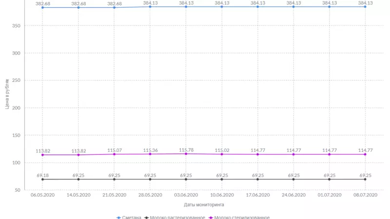 За сливочное масло, как и неделей ранее, продавцы запрашивают 957 рублей и 78 копеек. Не изменилась стоимость пастеризованного и стерилизованного молока: 59,25 и 114,77 рубля соответственно.
