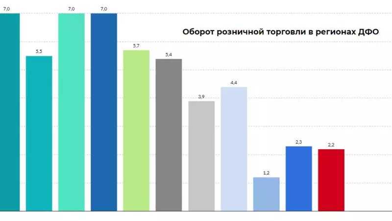 По обороту розничной торговли Сахалин поделил первое место с Хабаровским краем и Якутией (7 баллов). Уровень легальных доходов населения с аналогичной оценкой вывел островной регион в лидеры наравне с Чукотским АО, Магаданской областью и Республикой Саха. По уровню кредитной задолженности Сахалинская область вышла на первое место вместе с Чукоткой, а по обеспеченности социальной сферы стоит на одном уровне с Якутией, Магаданской областью и все тем же Чукотским АО.