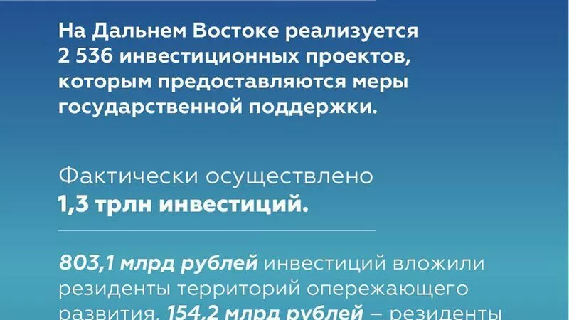- 2 536 инвестиционных проектов реализуется на Дальнем Востоке в настоящее время.