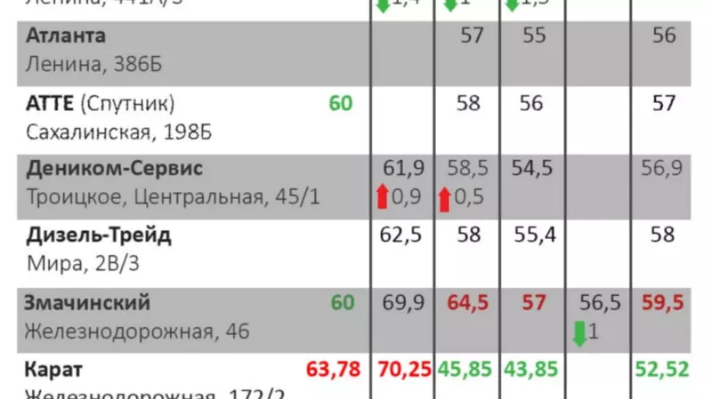 Телеграм-канал «Стоит» привел новую недельную сводку о ценах на топливо в Южно-Сахалинске. Так, в сводной таблице видно, что АЗС «Армрос» более чем на рубль опустила стоимость всех видов бензина. Снижение цены не коснулось только дизтоплива. «Змачинский» уступил лишь на АИ-80, оставив остальные виды топлива без внимания.