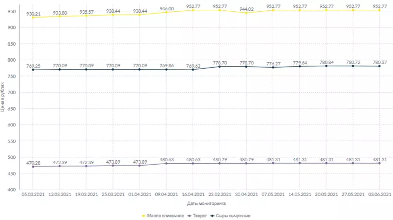 Цены на молочном рынке практически не изменились. За килограмм сливочного масла запрашивают 952 рубля и 77 копеек. Литр пастеризованного молока обойдется в 71 рубль и 57 копеек. Стерилизованное подорожало на 31 копейку за первую неделю июня.