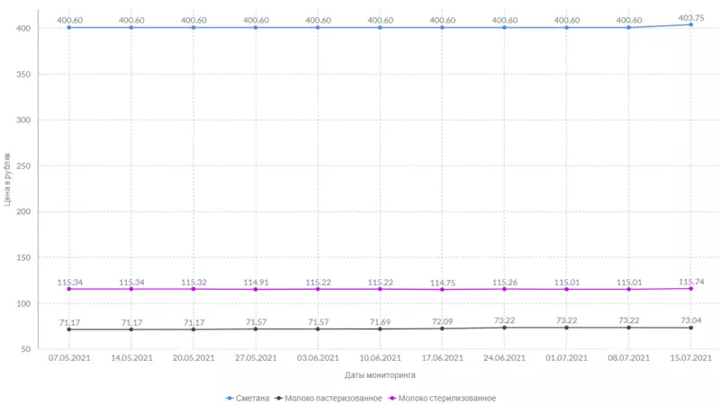 На молочном рынке снизилась стоимость сливочного масла — за килограмм просят на 24 копейки меньше. Пастеризованное молоко подорожало на 82 копейки , стерилизованное — на 73 копейки.