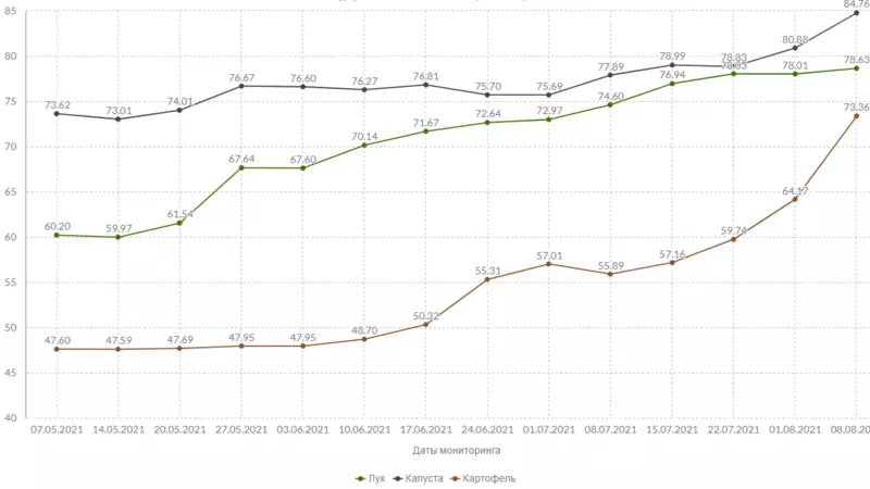 Свежий картофель в магазинах Сахалина подорожал на 9 рублей и 19 копеек за первую неделю августа. Цены на репчатый лук выросли на 62 копейки, а белокочанная капуста стала стоить на 3 рубля и 88 копеек больше. Морковь при этом подорожала на 2 рубля и 22 копейки.