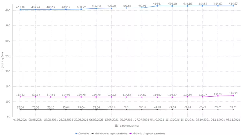 Килограмм сметаны, как и в конце прошлого месяца, обойдется сахалинцам в 414 рублей и 52 копейки. За массовую единицу творога придется заплатить на 1 рубль и 82 копейки больше. Сыр подорожал на 25 копеек в последние дни октября.