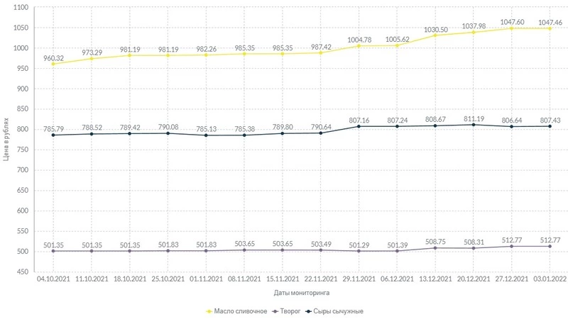 К Новому году осталась неизменной стоимость сметаны — за килограмм в магазинах Сахалина запрашивают 420 рублей и 9 копеек. За творог нужно заплатить 512 рублей 77 копеек. Сыры подорожали на 79 копеек в последнюю неделю 2021 года.