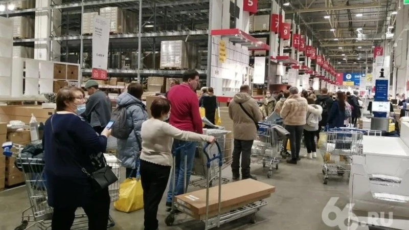 Перед закрытием магазинов по всей страны в IKEA собрались гигантские очереди. Фотографии ажиотажа распространили в социальных сетях.