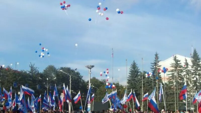 На площади собралось более тысячи человек, среди них были члены различных политических партий, предприятий, органов власти. С праздником земляков поздравили губернатор Александр Хорошавин, мэр Южно-Сахалинска Андрей Лобкин, представители партий. Художественные коллективы города выступили с яркой концертной программой.