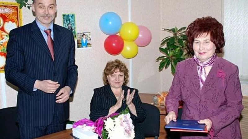 Она вручила виновнице торжества цветы, Почетную грамоту от администрации и ценный подарок.