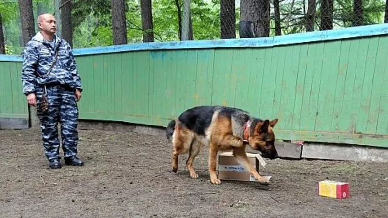 Каждая из служебных собак, несмотря на ненастную погоду, с первого раза обнаружила закладку. Затем инспектора-кинологи продемонстрировали выучку своих питомцев по исполнению различных команд.