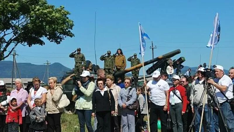 В Южно-Курильске в митинге приняли участие участники трудового фронта, жители райцентра, учащиеся средних школ, представители политических объединений, российского казачества.