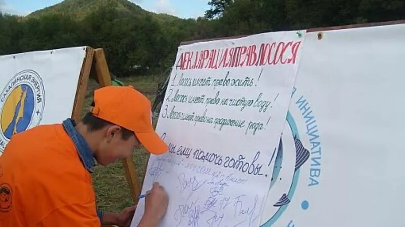 В конце праздника все участники фестиваля по традиции подписали Декларацию прав лосося: «Лосось имеет право жить. Лосось имеет право на чистую воду. Лосось имеет право на продолжение рода, и мы помочь ему готовы».
