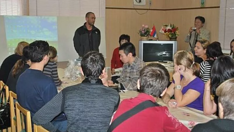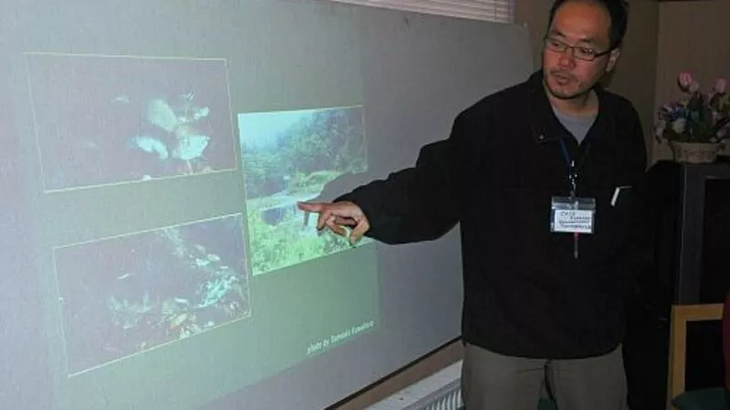 Известный японский тележурналист Курода Микио рассказал жителям Кунашира о своей работе. В течение десяти лет он ведет на государственном телеканале NHK передачи о животных, много путешествует по миру. На лекциях он говорил, в частности, о канадских медведях, которых наблюдал в прошлом году.