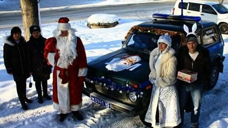 На сказочно разукрашенном служебном автомобиле, с мешком игрушек и сладких подарков, которые были собраны и приобретены сотрудниками Анивского ОВД, милиционеры поздравили 25 детишек из девяти семей сел Троицкое, Ново-Троицкое и Успенское. Ребята встретили гостей в новогодних костюмах и исполнили Деду Морозу со Снегурочкой свои любимые стихи и песни.