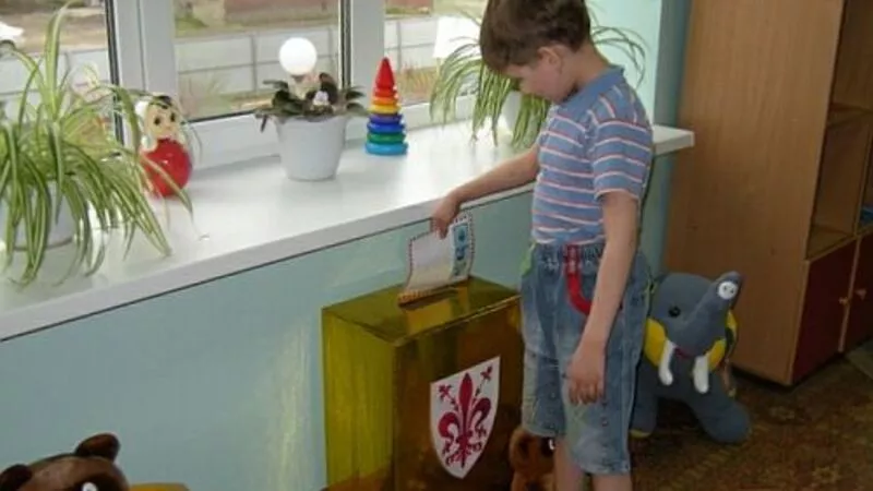 В завершении урока дети выбрали правителя страны «Детсадия» в форме, приближенной к настоящей избирательной кампании, с использованием бюллетеней, кабинок и урны для голосования.