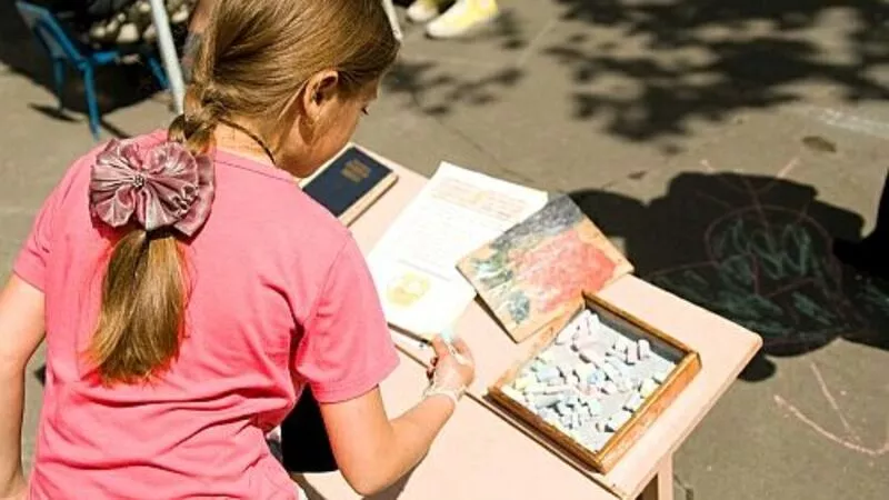 Путешествие по книжной стране не обошлось без веселых заданий – дети отгадывали загадки, вспоминали пословицы и поговорки про книги, рисовали мелками на асфальте древних животных, читали яркие журналы.