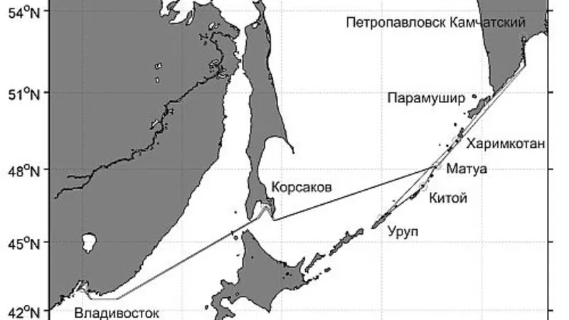 Учебно-парусное судно «Надежда» Морского государственного университета им. Адмирала Г.И. Невельского (Владивосток) с 78 курсантами на борту выполняет плановый рейс по маршруту Владивосток – Корсаков – о. Матуа – Петропавловск-Камчатский – о. Матуа – Корсаков – Владивосток.