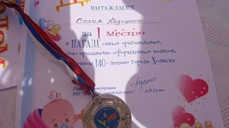 В детском шествии участвовали малыши, которым нет еще и года. В их честь коллектив «Холмские искорки» исполнил песню. Все участники праздничных мини-парадов получили памятные подарки.