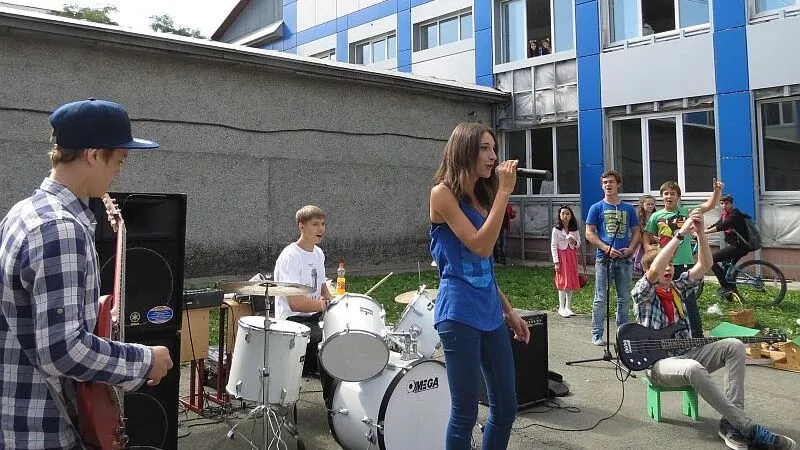 На выставке были и продолжатели непременных участников русских ярмарок – скоморохов. Их функцию выполнил собственный рок-ансамбль гимназии, который выдал и положенные децибелы, и собрал приличную толпу поклонников.