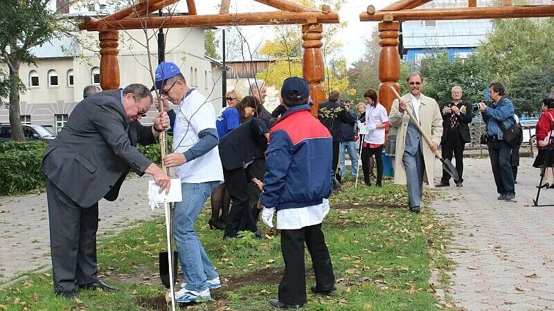 После официального открытия памятного знака аллеи все принялись за высадку деревьев. Участвовали в этом представители десятка компаний и предприятий города, а также неравнодушные жители. Около «своей» рябинки каждому предоставлялась возможность поставить табличку с названием организации.