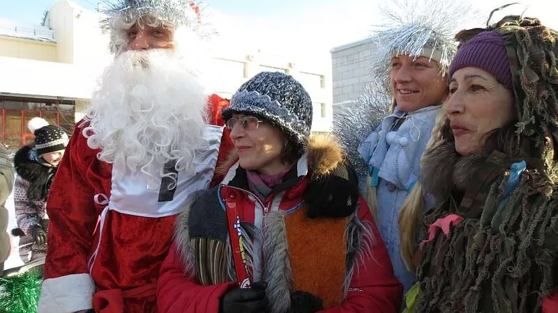 Пока болельщики ждали победного финиша участников забега, их развлекали известные творческие коллективы города, в том числе ансамбли «Русский терем» и «Воля». Различные игры и зимние забавы позволили победить сахалинские морозы и взрослым, и детям. Кроме того, для борьбы с холодом многие воспользовались частью возведенных на площади Ленина ледяными фигурами, над которыми работают мастера из Хабаровска. А завершился праздник огромным хороводом с Дедами Морозами и Снегурочками, который занял всю главную площадь города.