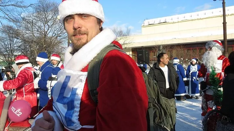Причем попробовать свои силы в спринте могли даже прохожие – на этот случай организаторы сшили специально 40 комплектов костюмов Деда Мороза и Снегурочки. Этим воспользовался Григорий Рушика, правда, ему пришлось обойтись без помощников, но зато в его рюкзаке нашлось место плейеру, и музыка помогла прийти на финише в первой пятерке.