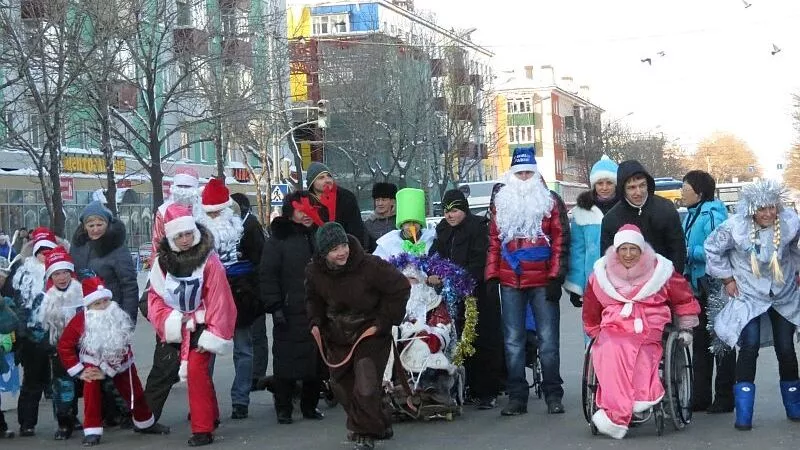 Участники предновогоднего состязания – а их набралось 31 человек - должны были одолеть дистанцию от областной библиотеки до площади Ленина. Причем практически все они запаслись группой поддержки из числа лесной нечисти, самые смекалистые догадались использовать подручные транспортные средства, вполне сошедшие за традиционных лесных оленей.