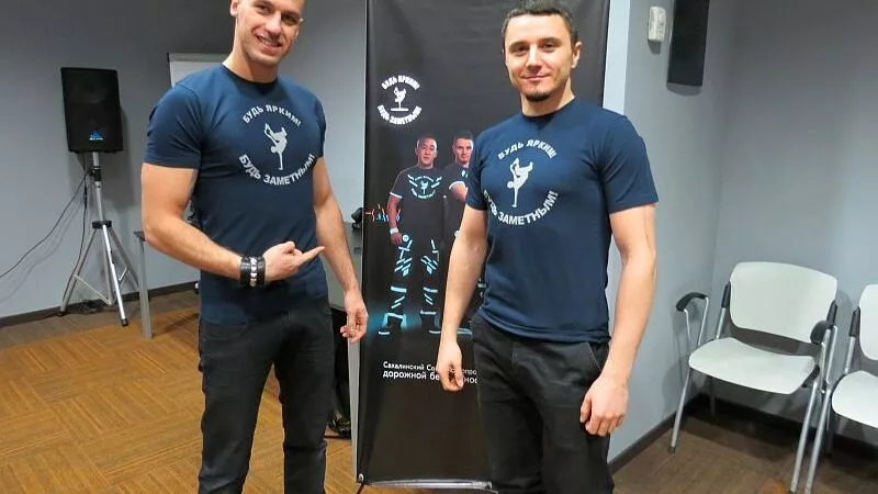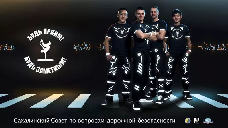 Лицом информационно-профилактической кампании выбрана известная на островах молодежная брейк-группа «P.S. Crew». С 16 января на улицах и в учреждениях Южно-Сахалинска появятся биллборды и плакаты, на которых ребята призывают всех последовать их примеру быть яркими и заметными, тем самым повышая безопасность дорожного движения. Они же стали главными героями рекламного ролика, который с 16 января будет транслироваться на сахалинских телеканалах. Участники брифинга первыми увидели этот ролик.