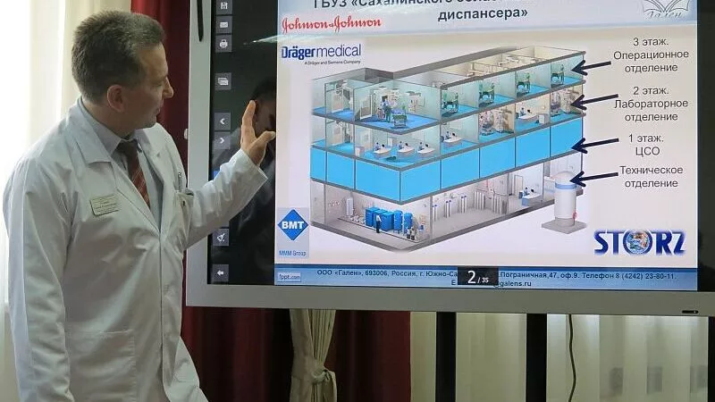 В строящемся хирургическом корпусе Сахалинского онкологического диспансера может появиться первая в островном регионе операционная «нового поколения». Там сахалинские хирурги-онкологи планируют применять методы телемедицины, позволяющие просматривать записи предыдущих операций, сверять результаты анализов, проводить консультации с другими специалистами в прямом эфире во время операции.