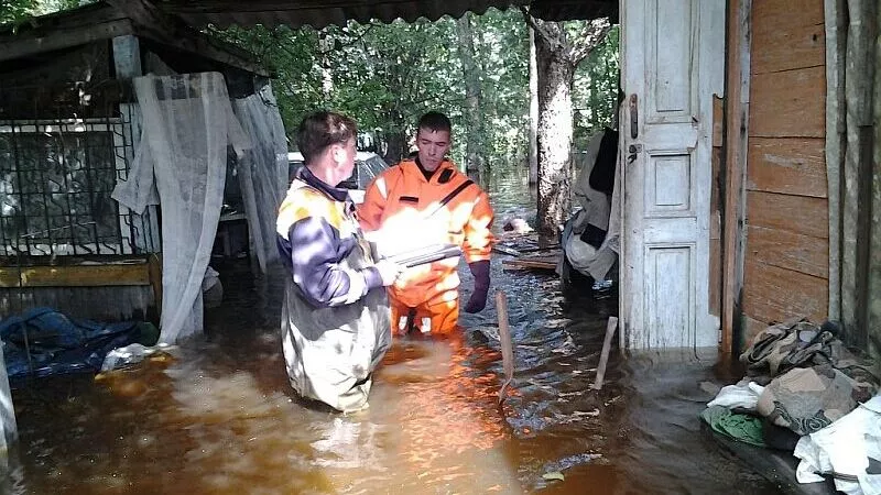 Сахалинские спасатели оказывают помощь жителям сел Гродеково и Белогорье Благовещенского района Амурской области, которые в числе прочих населенных пунктов в этом регионе пострадали от наводнения.