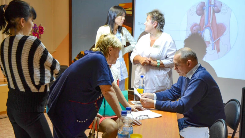 Врач с мировым именем прибыл на остров всего на два дня. Кстати, пока он ехал на остров, его вызывали на срочную сложнейшую операцию в Уфу, которая длилась 8 часов. Ежегодно профессор делает по 140 пересадок почек и 30 – печени. Сегодня он провел занятие с островными врачами смежных специальностей – нефрологами, урологами, гастроэнтерологами и др. Затем Мойсюк ответил на вопросы больных, испытывающих сложности с печенью и почками, тех, кто перенес трансплантацию или только собирается на операцию.