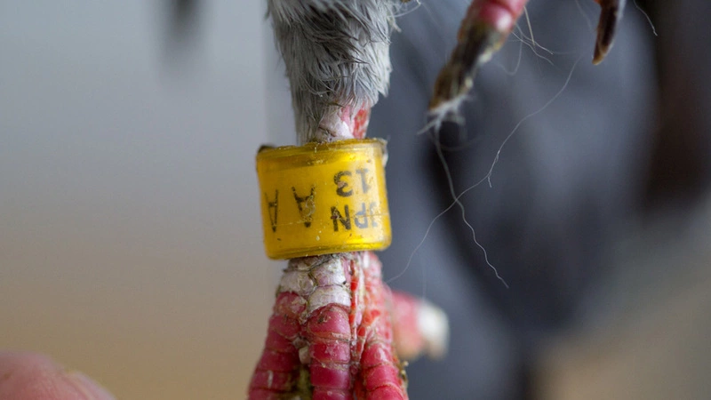 На Кунашир залетел сизый японский почтовый голубь. Его происхождение подтверждают два цветных пластиковых кольца на лапках с указанием универсального номера птицы и телефона хозяина.