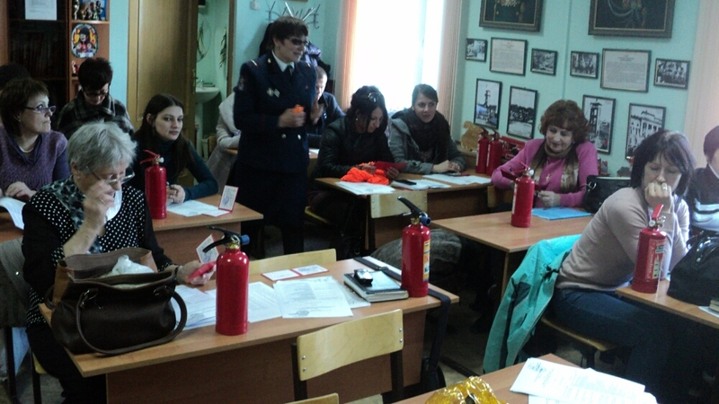 Учителя ознакомились с основными нормативными документами, регламентирующими требования пожарной безопасности, в том числе с Правилами противопожарного режима в РФ и первичными средствами тушения пожара.