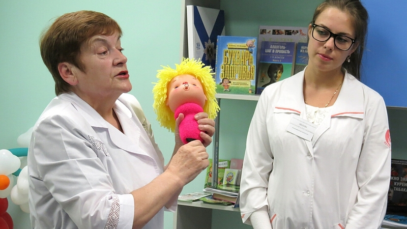 Сегодня же в кабинете состоялось первое занятие. Школьникам рассказали о вреде курения и его влиянии на организм человека, продемонстрировав зубы курильщика и курящую куклу.
