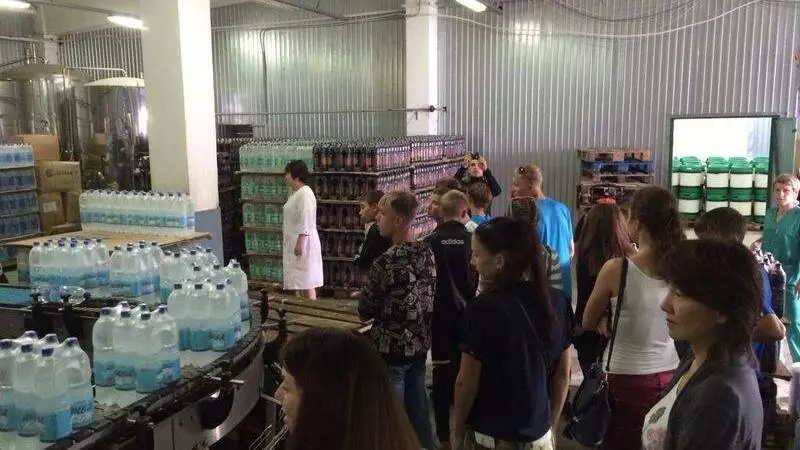На предприятии «Северная звезда» ребятам показали, как устроен процесс розлива минеральной и столовой воды и газированных напитков.