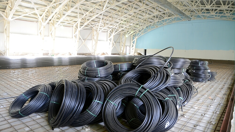 По словам строителей, работы на спортивном комплексе близятся к завершению. Уже установлен каркас здания, в данный момент идет монтаж арены, из 27 км труб уложены 18 км. Открытие намечено на декабрь этого года с тем, чтобы холмчане смогли встретить здесь новогодние праздники.