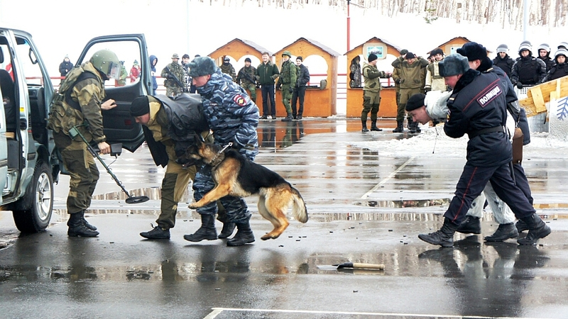 Военнослужащие войсковой части №3590 и специальной моторизированной военной части №5530 МВД России продемонстрировали элементы рукопашного боя, специальные комплексы приемов (каратэ) для боя с несколькими противниками, а также действия при задержании преступника и при обнаружении взрывоопасного предмета.