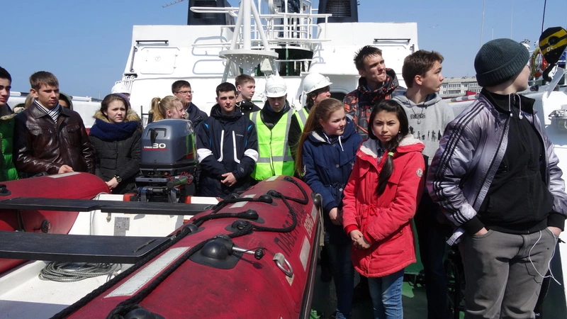 Старшеклассники могли примерить на себя роли таможенников, облачившись в гидрокостюм и побывав в машинном отделении, посидев за штурвалом катера, а также в шлюпке судна. Последнее плавсредство – не только спасательный плот, оно играет ключевую роль в морских спецоперациях при задержании судов, незаконно перевозящих морепродукты и другие товары. Отличительная же особенность таможенных судов заключается в их высоких скоростных характеристиках, которые превосходят в этом качестве пограничные и военные японские корабли. Кроме того, возможность резкого торможения и спуска шлюпки на воду за одну минуту делает их сверхманевренными и высокоэффективными при проведении спецопераций.