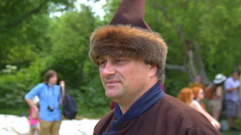 После ожесточенных боев рыцарей и зрителей ждали необычные угощения – пирожки и компот, приготовленные по древним английским рецептам. Помимо тяжеловооруженных воинов из разных эпох, возле импровизированной кухни можно было встретить французских крестьянок, английских аристократок и даже обеспеченного горожанина из Московской Руси. Друзья зовут его Меркурий, в миру он – простой инженер Сергей Рыжков.