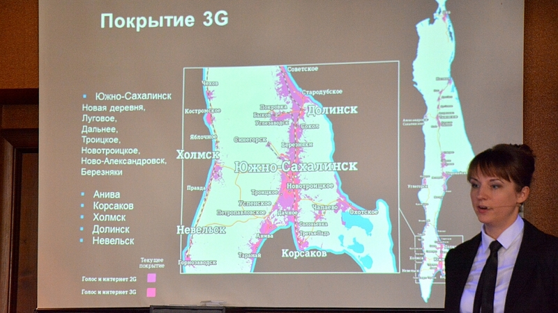 С завтрашнего дня уверенный прием 3G будет обеспечен в Южно-Сахалинске, Новой Деревне, Луговом, Дальнем, Троицком, Новотроицком, Новоалександровске и Березняках. Пользоваться сетью третьего поколения смогут и жители Анивы, Корсакова, Долинска, Невельска и Холмска.