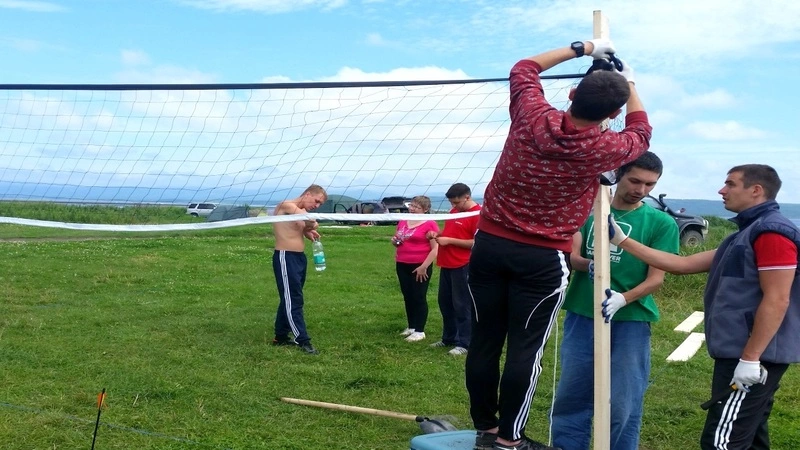Кроме того, ребята установили волейбольную площадку, столы и скамейки для отдыхающих.