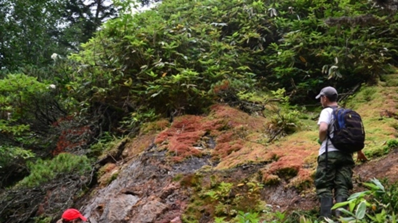 - Для установления границ и степени воздействия последнего мы изучали сообщества мхов и лишайников в широко распространенном на Кунашире типе леса – ельнике из ели Глена с густым покровом из бамбучника. Самое замечательное их свойство – встречаемость как на периферии термальных полей, так и на значительном удалении от них, там, где влияние сольфатарных газов уже практически сводится к нулю, - отметила Коротеева. - В ельниках нас интересует, в первую очередь, эпифитный покров как наиболее уязвимая часть сообщества. Мы измеряем покрытие мхов и лишайников на стволах, определяем видовой состав, смотрим, как изменяются эти параметры в зависимости от расстояния до источника загрязнения. Сейчас данные систематизируются и обрабатываются. Даже визуально можно установить, что сообщества, произрастающие непосредственно у источников, сильно отличаются по составу от удаленных.