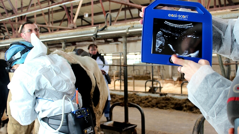 Сканер оборудован датчиком, который передает изображение в режиме реального времени на специальные очки и на переносной дисплей. Кости зародыша отражаются светлым цветом, а ткани – темным. По разнице оттенков можно наблюдать, как проходит беременность, и вовремя обнаружить патологию. С помощью аппарата можно определить и пол будущего теленка.