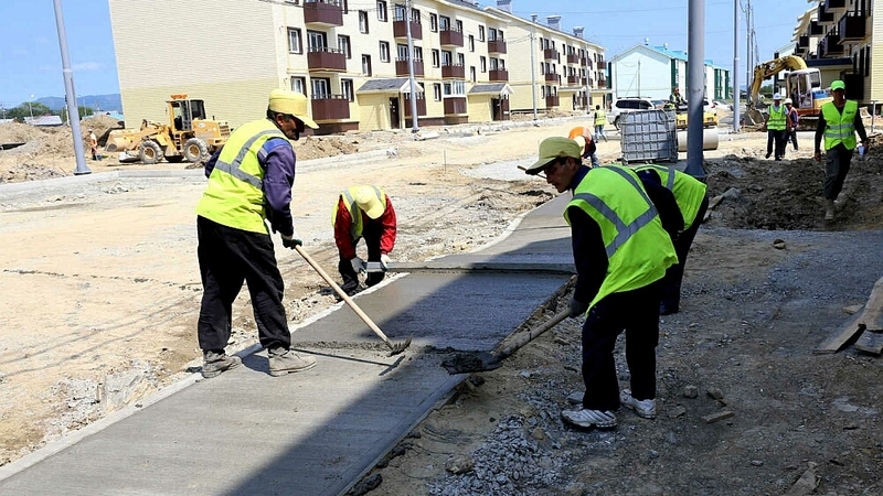 Территория в новом микрорайоне Дальнего постепенно преображается. Рабочие устанавливают бордюры, обустраивают тротуары и готовят проезды под асфальтобетонное покрытие.