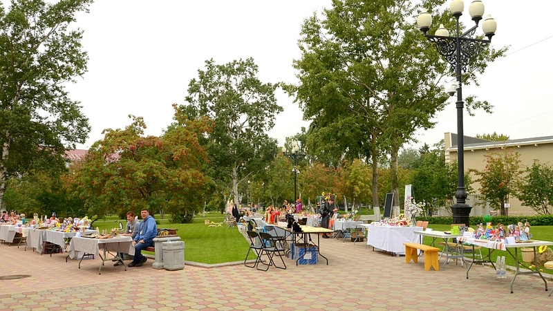 Сквер у музея книги А. П. Чехова «Остров Сахалин» стал сегодня площадкой первого областного фестиваля декоративно-прикладного творчества «Палата ремесел».