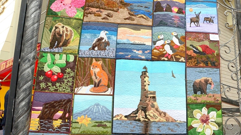 Главным экспонатом фестивальной выставки стало панно «Лоскутный Сахалин». Его любовно изготовили мастера из всех муниципальных образований области. Каждый фрагмент передает изюминку малой родины островитян. Работа успела собрать венок наград на российских фестивалях и успела отметиться на творческом форуме в США.