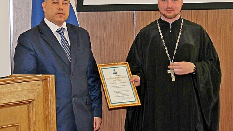 Помощник губернатора области Максим Бондарев зачитал послание главы региона и от его имени вручил памятные грамоты служителям Южно-Сахалинской и Курильской епархии, внесшим большой вклад в строительство и открытие нового кафедрального собора Рождества Христова.