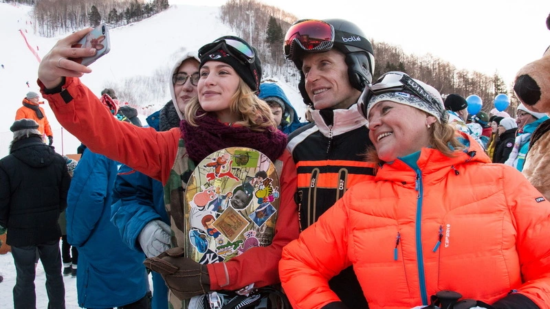 Первыми западный склон горы Большевик опробовали воспитанники спортивных школ области и опытные горнолыжники. Они спустились большой группой под музыку государственного гимна, держа в руках флаги России и Сахалинской области.