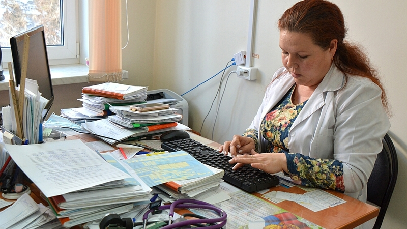 Редкость для больницы в наши дни, тем более для сельской, - отсутствие проблем с кадрами. На три тысячи человек населения - два участковых терапевта, говорит заведующая. Здесь есть свои педиатр, гинеколог, стоматолог (осенью, кстати, привезли новую стоматологическую установку), рентгенолог, фтизиатр. Второй год в селе работает хирург. Сейчас он на учёбе по ультразвуковым исследованиям. Перед новым годом в амбулатории появился новый аппарат УЗИ за 5,5 млн рублей, но пока не используется. С июня хирург начнёт с ним работать.
