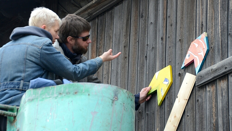 Три человека чуть более чем за два часа смонтировали все доски на бараке полувековой давности. При сдаче «объекта в эксплуатацию» – ни красных ленточек, ни чиновников, ни группы поддержки. Журналистов тоже практически не было: приглашения на мероприятия не рассылали. Кто увидел в соцсетях – пришел. Настроение создавали разве что удивленные горожане. Пару раз посигналили проезжающие машины, в водительское окно виднелся поднятый вверх большой палец: молодцы, круто! Да прохожие, которые останавливались и вглядывались в ярких рыб на почти черных барачных досках.